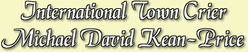 Michael is a collector of folk songs and tales, and has also visited schools as a storyteller of these together with his own stories and poems. He is also a much sought after guest speaker for Rotary and Roundtable Clubs, W.I. and R.B.L. where he talks about his role as a Town Crier, together with details of Civic Events and customs from the Rich tapestry of English Civic History. Michael is also the British and Court Correspondent for 'The Town Crier' newspaper of Tewksbury, Massachusetts. Michael has been instrumental in establishing links with Tewksbury, New Jersey whose Mayor Dianne Clarke-Kudless will be visiting Tewkesbury in April 2003. Michael David Kean-Price uniquely offers the best of Olde Englande as a Town Crier, tempered with an acute awareness of the marketing and promotional needs of today's national and international business community. If you would like to contact Michael, please use the form below: |